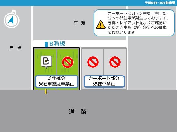 駐車場所が分かりやすいよう立看板設置してあります。