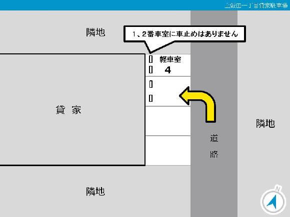 【駐車場利用者へのお願い事項】 ■ご予約された区画へ駐車する前に、必ず安全確認をお願いします。 障害物との接触の可能性がある等、通常の使用に問題がある場合は、駐車せずに 「タイムズのB」コンタクトセンターにお電話ください。 ■ご利用いただく駐車場の住所で検索しても、ナビや地図アプリでは正しく表示されない場合がございます。 住所下にある「GoogleMAPで見る」のボタンを押して頂くと正しい場所が表示されます。 ■現地に到着した際は、必ず写真や配置図をご確認の上、駐車してください。 間違って他の利用者の場所に駐車しないよう、お気を付けください。 ※現地には番号が振られていないケースもございます。 ■周辺は住宅地ですので、アイドリング、夜間のドア開閉などに配慮をお願いします。 |