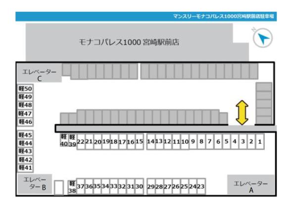 ■店舗営業時間:9:00~23:00/Aエレベーターのみ24時間稼働 店舗営業時間外の車両入出庫の場合、店舗裏手にある出入口よりお越しの上、駐車場出入口のチェーンは元の位置に戻すようお願いいたします。 ■ 高さ制限(2.0m)にご注意ください。 ■ 駐車場情報のレイアウト写真と現地状況をご覧いただき、確認の上で必ず指定の区画にお停めください。 ■18 歳未満のお子様連れでのご利用はお控え下さい。 |