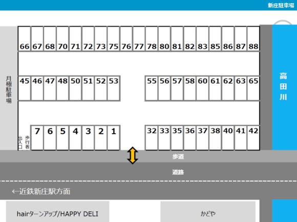 【駐車場へのご案内】 ※フェンスで囲まれた月極駐車場「新庄駐車場」内です。 ※近隣に月極駐車場がありますので、間違えないように写真を確認の上でお越しください。 【駐車の際にはご注意ください】 ※非常に広い駐車場のため、駐車前に指定された区画番号を確認してお停めください。 ※指定区画以外には月極契約車がいるため、必ず指定番号にお停め下さい。 |