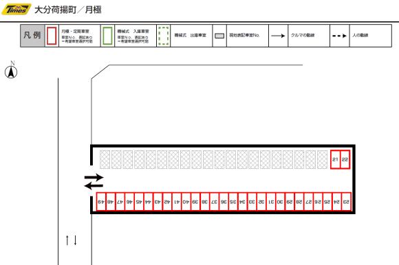 ■地面に機器がない、月極の駐車スペースをご利用ください。 ■誤って時間貸の駐車スペースをご利用された場合、返金はできかねます。 ■付近の駐車スペースに月極契約が入っておりますので、必ず指定された場所の枠線内に駐車してください。 |