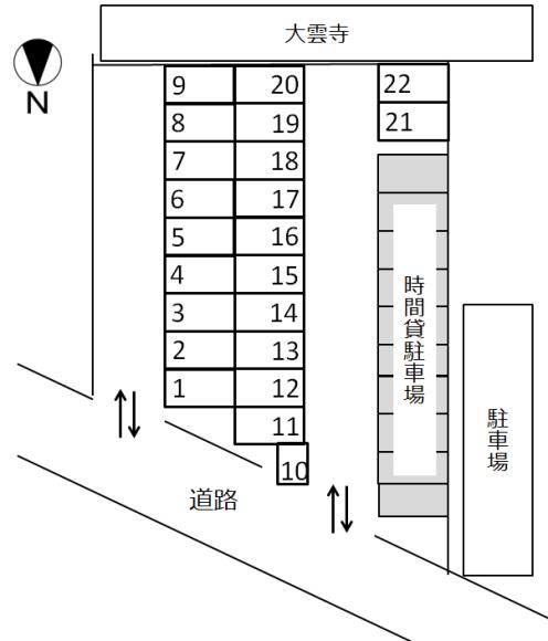 ・指定区画以外は契約車がいますので、レイアウト写真をご確認の上で、必ず指定の区画にお停め下さい。 ※一部、番号が書かれていない区画がありますので、駐車場区画図をご確認の上でお停め下さい。 ※月極に関するお問い合わせは下記連絡先までお願い致します。 クラタ不動産 086ー233ー0523 |