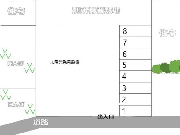 道路沿いに面した駐車場ですので、入出庫の際は通行人等に十分お気をつけてください。 ・住宅街にあるので、周辺の住民・対向車・騒音などにはご注意ください。 ・駐車場周辺には学校がございます。登校・下校時の学生にご注意ください。 ・車中泊はできません。 |