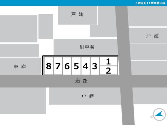 【駐車場へのご案内】 ●月極駐車場内に駐車区画があります。 ●カーナビ等でピンポイントに指定されない場合は、「GoogleMapsで見る」のボタンから正しい位置をご確認ください。 【駐車の際にはご注意ください】 ●周辺道路の交通量が多く、自転車・歩行者に十分注意してください。 ●現地に記載の番号が見えづらい場合があります。駐車場情報のレイアウト写真を確認の上で指定の区画にお停めください。 ●周辺は住宅地ですので、アイドリング、夜間のドア開閉などに配慮をお願いします。 |