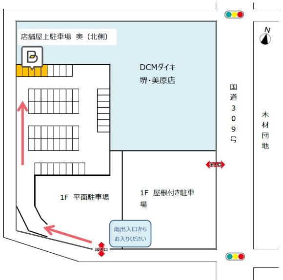※DCM堺美原店が2025年12月31日(水)をもちまして閉店することに伴い、予約駐車は12月30日で終了いたします。 長年にわたりご利用いただきましてありがとうございました。。 DCMダイキ堺美原店の2F駐車場です。 必ず指定されたタイムズのB駐車区画にお停めください。 店舗営業時間(9:00-19:00)のみ利用可能です。時間外は出入りができませんのでご注意ください。 ※タイムズのB駐車区画が埋まっている場合は、近くの空いている区画にお停めください。 不明点がありましたら、店舗ではなくBの問い合わせ先にご連絡お願いします。 |