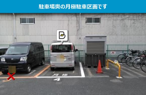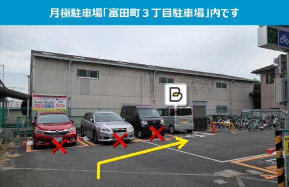 【駐車場へのご案内】 ※時間貸し駐車場と駐輪場併設の月極駐車場「富田町3丁目駐車場」内です。 ※公道から大きく奥に進んだ先にある駐車場です。 ※駐車場周辺の道路が狭く入口もわかりづらいため、駐車前に地図やGoogleストリートビューを確認の上でお越しください。 【駐車の際にはご注意ください】 ※レイアウトをご確認の上で、予約確認メールに記載された月極区画にお停めください。 ※周辺は住宅地ですので、アイドリング、夜間のドア開閉などに配慮をお願いします。 |