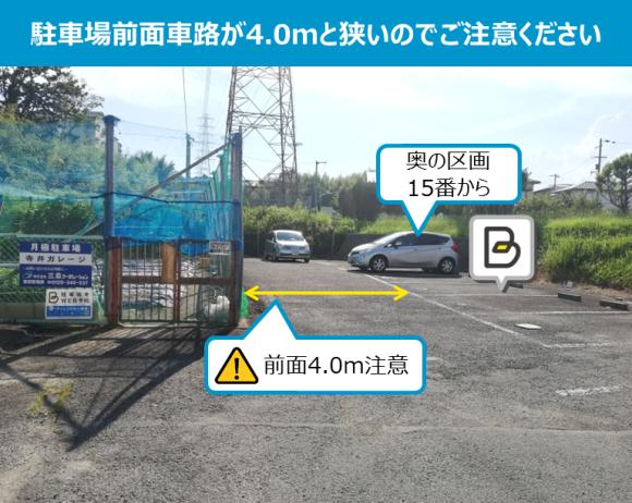 【駐車場へのご案内】 ●アパート「光荘、緑荘」の敷地にある月極駐車場内です。 ●周辺の道路が狭いためご注意ください。駐車場までは東側方面からお越しになると道路が広めです。 ●カーナビ等でピンポイントに指定されない場合は、「GoogleMapsで見る」のボタンから正しい位置をご確認ください。 【駐車の際にはご注意ください】 ●現地に記載の番号が見えづらい場合があります。駐車場情報のレイアウト写真を確認の上で指定の区画にお停めください。 ●周辺は住宅地ですので、アイドリング、夜間のドア開閉などに配慮をお願いします。 |