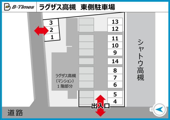 ・マンション北側の3台区画です。 ・指定区画以外は契約車がいますので、レイアウト写真をご確認の上で、必ず指定の区画にお停め下さい。 ・周辺は住宅地ですので、アイドリング、夜間のドア開閉などに配慮をお願いします。 |