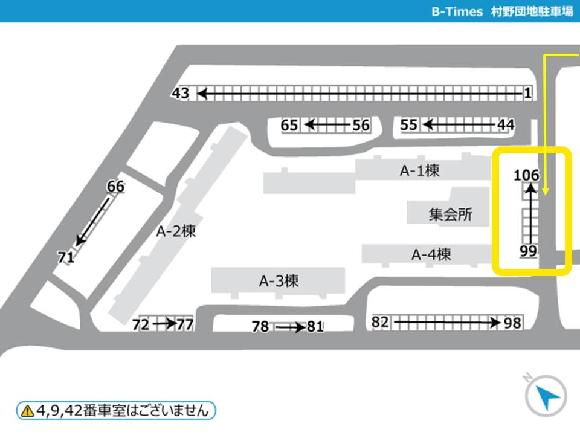■団地内に一方通行がある場合は必ず守って走行してください。 ■現地に到着した際は、必ずタイムズのBの写真や配置図をご確認の上、駐車してください。 間違って他の利用者の場所に駐車しないよう、お気を付けください。 ■団地内駐車場となりますので、アイドリング・喫煙・ポイ捨てはご遠慮くださ い。 <ご予約した区画に不正車両が止まっていた場合> 下記をご参照の上、空き車室の照会・振替および不正駐車情報のご入力をお願いいたします。 https://btimes.jp/guide/rent_illegalpark.html |
