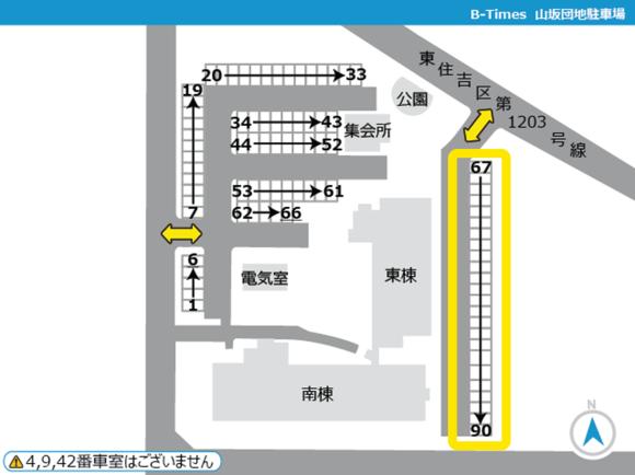 ※団地内の広い駐車場です。予約確認メールに記載された区画以外には月極契約がありますので、必ず指定された番号にお停めください。 ■現地に到着した際は、必ずタイムズのBの写真や配置図をご確認の上、駐車してください。間違って他の利用者の場所に駐車しないよう、お気を付けください。 ■団地内駐車場となりますので、アイドリング・喫煙・ポイ捨てはご遠慮ください。 <ご予約した区画に不正車両が止まっていた場合>下記をご参照の上、空き車室の照会・振替および不正駐車情報のご入力をお願いいたします。https://btimes.jp/guide/rent_illegalpark.html |
