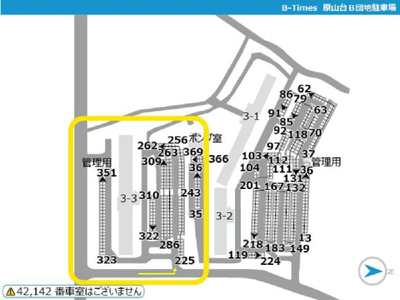 ■近隣に似た名前の団地がありますが、当駐車場は【原山台B団地】の駐車場となっております。お間違えないようにご注意ください。 ■団地内に一方通行がある場合は必ず守って走行してください。 ■現地に到着した際は、必ずタイムズのBの写真や配置図をご確認の上、駐車してください。間違って他の利用者の場所に駐車しないよう、お気を付けください。 ■団地内駐車場となりますので、アイドリング・喫煙・ポイ捨てはご遠慮くださ い <ご予約した区画に不正車両が止まっていた場合> 下記をご参照の上、空き車室の照会・振替および不正駐車情報のご入力をお願いいたします。 https://btimes.jp/guide/rent_illegalpark.html |