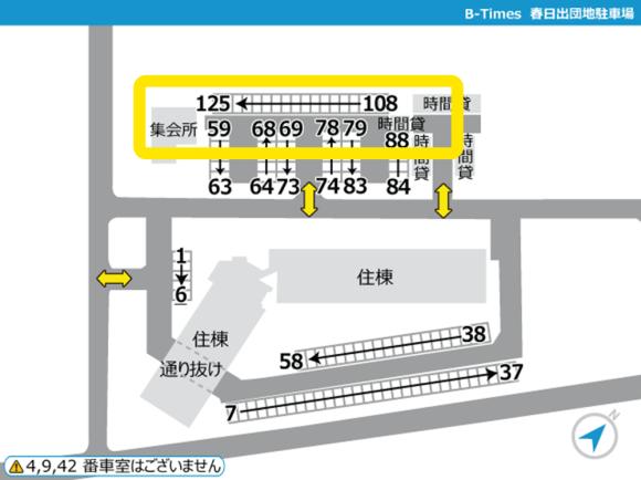 ■団地内に一方通行がある場合は必ず守って走行してください。 ■現地に到着した際は、必ずタイムズのBの写真や配置図をご確認の上、駐車してください。 間違って他の利用者の場所に駐車しないよう、お気を付けください。 ■団地内駐車場となりますので、アイドリング・喫煙・ポイ捨てはご遠慮くださ い <ご予約した区画に不正車両が止まっていた場合> 下記をご参照の上、空き車室の照会・振替および不正駐車情報のご入力をお願いいたします。 https://btimes.jp/guide/rent_illegalpark.html |