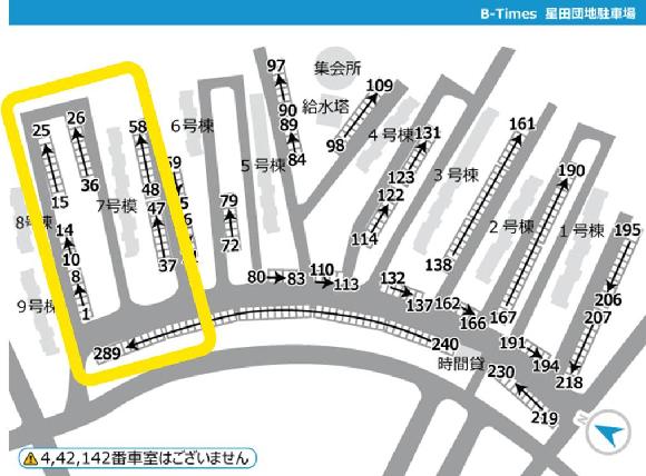 ■ナビの場合は「交野市藤が尾2丁目9-1」の住所を登録して頂くと、団地入口付近までたどり着けます。※ナビによっては登録されていないケースもございます。 ■団地内に一方通行がある場合は必ず守って走行してください。 ■現地に到着した際は、必ずタイムズのBの写真や配置図をご確認の上、駐車してください。間違って他の利用者の場所に駐車しないよう、お気を付けください。 ■団地内駐車場となりますので、アイドリング・喫煙・ポイ捨てはご遠慮くださ い <ご予約した区画に不正車両が止まっていた場合> 下記をご参照の上、空き車室の照会・振替および不正駐車情報のご入力をお願いいたします。 https://btimes.jp/guide/rent_illegalpark.html |