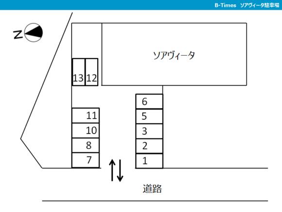 【駐車場へのご案内】 ●アパート「ソアヴィータ」の北側駐車場です。 【駐車の際にはご注意ください】 ●現地に記載の番号が見えづらい場合があります。駐車場情報のレイアウト写真を確認の上で指定の区画にお停めください。 ●周辺は住宅地ですので、アイドリング、夜間のドア開閉などに配慮をお願いします。 |
