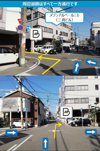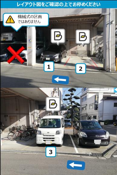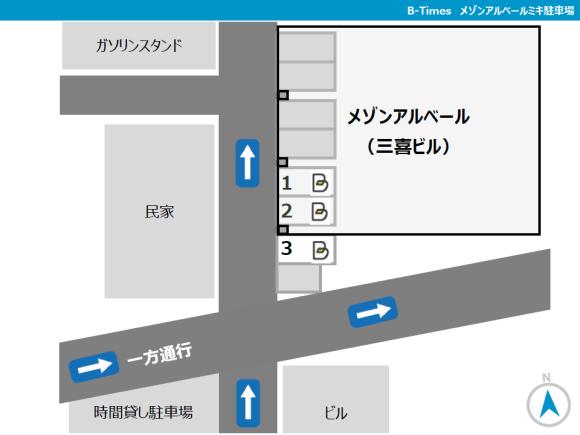 ※夜19:30から翌朝7:00まで利用可能。システム上では24時までの利用時間となっていますが、翌朝7時まで利用可能です。 ※予約の際に駐車する車両ナンバーを入力してください。 【駐車場へのご案内】 ●メゾンアルベールミキ(三喜ビル)1F 西側道路沿いの駐車場です。ビル1F部分のため高さ制限(250cmまで)がありますのでご注意ください。 【駐車の際にはご注意ください】 ●アイドリング、夜間のドア開閉などに配慮をお願いします。 |