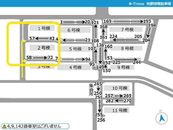 ■団地内に一方通行がある場合は必ず守って走行してください。 ■現地に到着した際は、必ずタイムズのBの写真や配置図をご確認の上、駐車してください。 間違って他の利用者の場所に駐車しないよう、お気を付けください。 ■団地内駐車場となりますので、アイドリング・喫煙・ポイ捨てはご遠慮くださ い <ご予約した区画に不正車両が止まっていた場合> 下記をご参照の上、空き車室の照会・振替および不正駐車情報のご入力をお願いいたします。 https://btimes.jp/guide/rent_illegalpark.html |