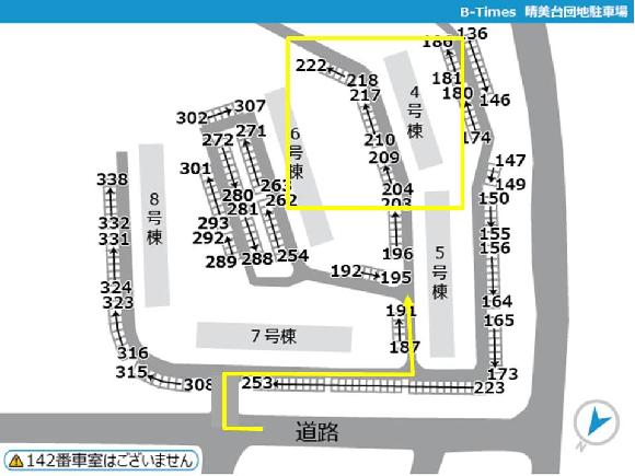 ■近隣に似た名前の団地がありますが、当駐車場は【晴美台団地】の駐車場となっております。お間違えないようにご注意ください。 ■団地内に一方通行がある場合は必ず守って走行してください。 ■現地に到着した際は、必ずタイムズのBの写真や配置図をご確認の上、駐車してください。間違って他の利用者の場所に駐車しないよう、お気を付けください。 ■団地内駐車場となりますので、アイドリング・喫煙・ポイ捨てはご遠慮くださ い <ご予約した区画に不正車両が止まっていた場合> 下記をご参照の上、空き車室の照会・振替および不正駐車情報のご入力をお願いいたします。 https://btimes.jp/guide/rent_illegalpark.html |