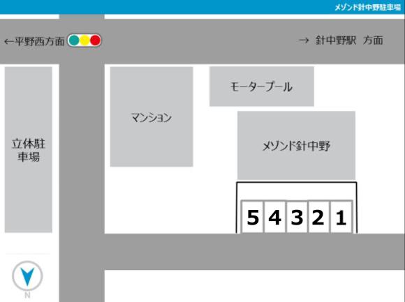 【駐車場へのご案内】 ※メゾンド針中野マンション北側の駐車場です。 【駐車の際にはご注意ください】 ※指定の区画番号以外には契約車がいますので、予約確認メールに記載の区画番号にお停めください。 ※駐車区画にはサインスタンドが置かれていますので、利用の際には後方に避けて駐車し、出庫する際に元に戻していただけますようお願します。 ※周辺は住宅地ですので、アイドリング、夜間のドア開閉などに配慮をお願いします。 |