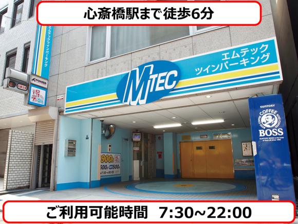 心斎橋駅近くの機械式駐車場。駅周辺のおでかけ、ビジネスシーンにもぜひご利用ください!