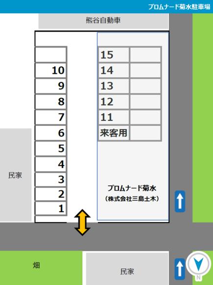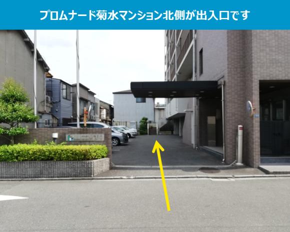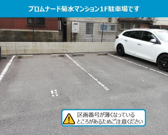 【駐車場へのご案内】 ●「プロムナード菊水」マンションの駐車場です。 ●マンション北側が出入口です。 【駐車の際にはご注意ください】 ●車室番号が薄くなっている場所があるため、レイアウト写真をご確認の上でお指定場所にお停めください。 ●周辺は住宅地ですので、アイドリング、夜間のドア開閉などに配慮をお願いします。 |