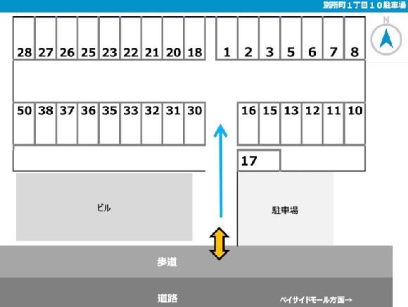 【駐車場へのご案内】 ※道路から奥に入った月極駐車場内です。 ※「サンディ岸和田別所店」の道路を挟んで向かい側が駐車場出入口です。 【駐車の際にはご注意ください】 ※広い駐車場のため、予約時に指定された区画番号を確認の上で、レイアウト図の場所に向かってお停めください。 ※アイドリングストップにご協力をお願いします。 |