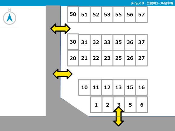 ■ご利用いただく駐車場の住所で検索しても、ナビや地図アプリでは正しく表示されない場合がございます。 住所下にある「GoogleMAPで見る」のボタンを押して頂くと正しい場所が表示されます。 ■現地に到着した際は、必ずタイムズのBの写真や配置図をご確認の上、駐車してください。 間違って他の利用者の場所に駐車しないよう、お気を付けください。 ※現地に記載されている番号が見えにくい場合もございます。 ■ゴムプレートと車室番号を目印に駐車してください。 |