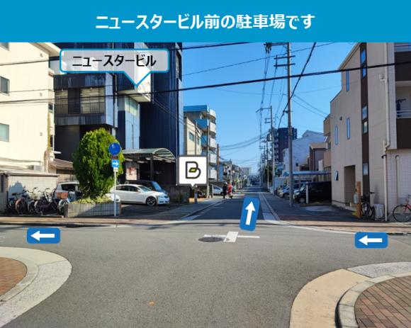 【駐車場へのご案内】 ※ニュースタービル前の駐車区画です。 ※周辺の道路は一方通行です。注意してお越しください。 【駐車の際にはご注意ください】 ※駐車区画の幅が2.3mと狭めです。区画線の真ん中になるようにお停めください。 ※車止めはありません。後方のビルや柱に注意してください。 ※周辺は住宅地のため、アイドリング、夜間のドア開閉などに配慮をお願いします。 |