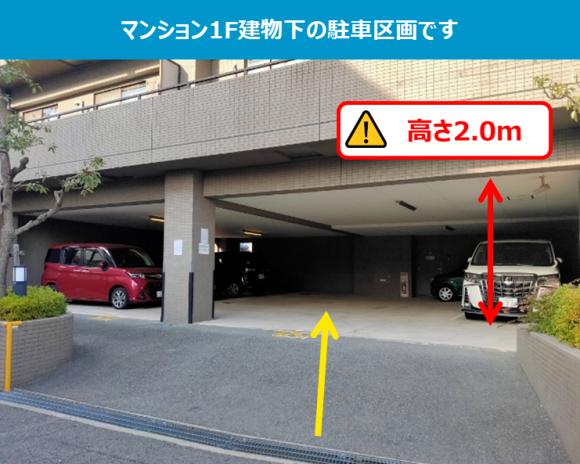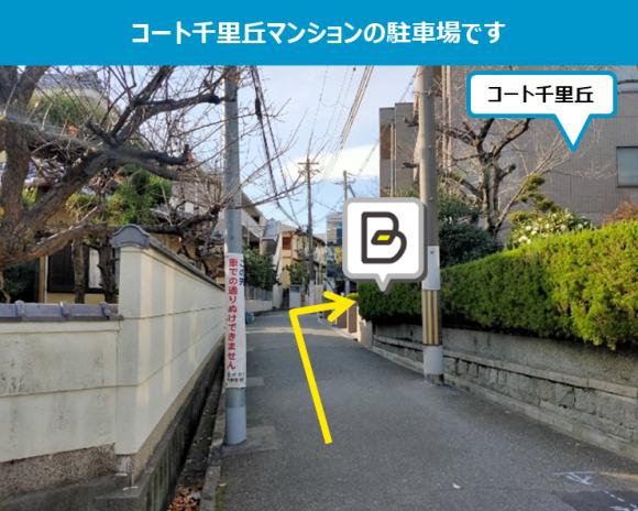 ※建物下駐車区画のため、高さ制限あり(2.0m)ご注意ください。 【駐車場へのご案内】 ※マンション「コート千里丘」の駐車場内です。 ※マンション下ピロティ部分の駐車区画です。 【駐車の際にはご注意ください】 ※柱や壁、天井に注意してお停めください。 ※周辺は住宅地ですので、アイドリング、夜間のドア開閉などに配慮をお願いします。 |