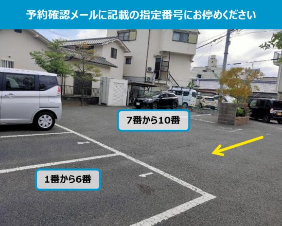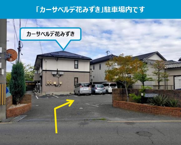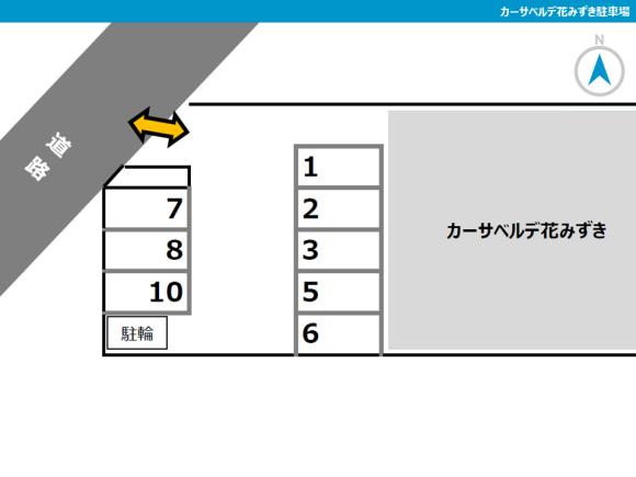 【駐車場へのご案内】 ※「カーサベルデ花みずき」アパートの駐車場です。 【駐車の際にはご注意ください】 ※駐車場写真5枚目のレイアウト図を確認して、予約時に指定された区画番号にお停めください。 ※周辺は住宅地のため、夜間のドア開閉、アイドリングに配慮をお願いします。 |