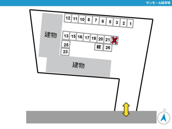 【駐車場へのご案内】 ※サンモールの北側にある駐車場です。 【駐車の際にはご注意ください】 ※台数が多い非常に大きな駐車場のため、駐車する前に指定された区画番号とレイアウト図を確認してからお停めください。 ※現地の区画番号表記が見えづらい場合があります。 ※周辺住宅のご迷惑にならないよう、アイドリングストップにご協力をお願いします。 |