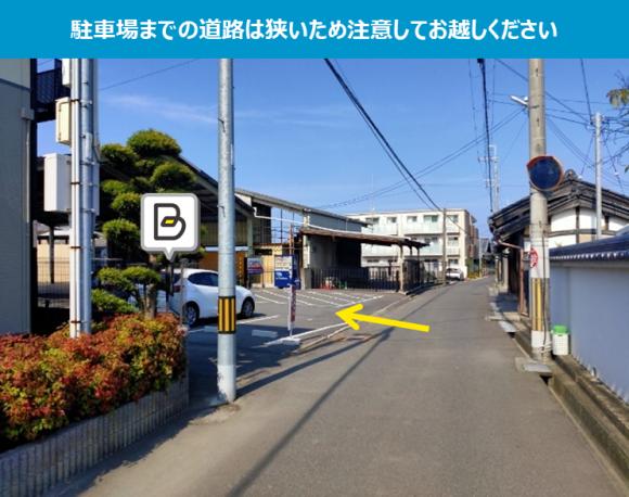 【駐車場へのご案内】 ※駐車場周辺の道路が狭いため通行にご注意ください。 【駐車の際にはご注意ください】 ※現地の駐車区画番号と、駐車場情報のレイアウト図を参考に予約確認メールに記載された区画場所にお停めください。 ※周辺は住宅地ですので、アイドリング、夜間のドア開閉などに配慮をお願いします。 |