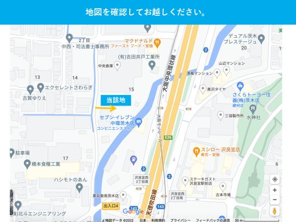 大阪府茨木市沢良宜西2丁目15-45(Google Maps) ※住所をナビに入れても正しく表示されない場合があります。 |