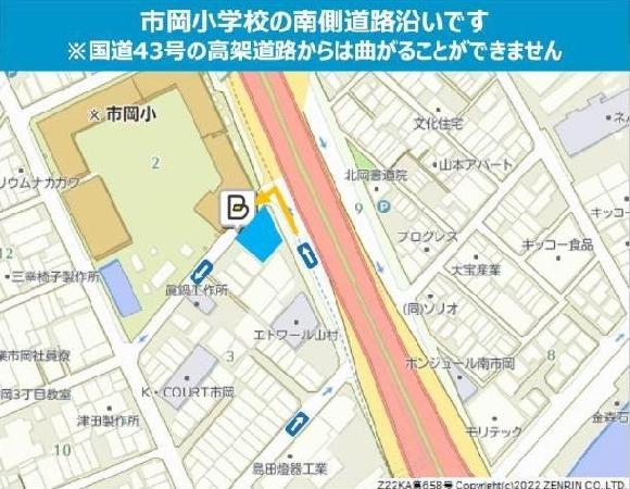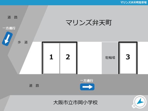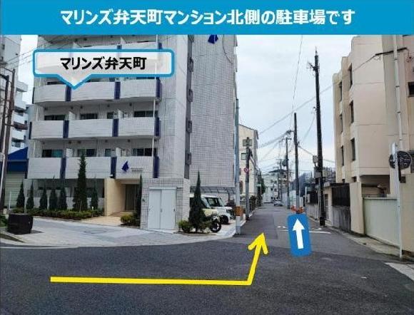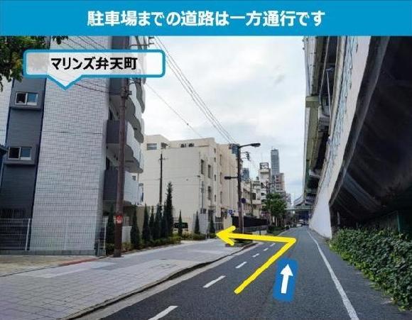 ※3番区画は両側が壁に囲われているため、ドアの開け閉めと出入りの際には壁面にご注意ください。 【駐車場へのご案内】 ※マリンズ弁天町(北側)の駐車場です。 ※駐車場までの道路は西向きの一方通行です。 ※国道43号高架道路からは直接曲がることができません。 【駐車の際にはご注意ください】 ※駐車区画横の壁面に注意して入出庫をお願いします。 ※アイドリング、夜間のドア開閉などに配慮をお願いします。 |