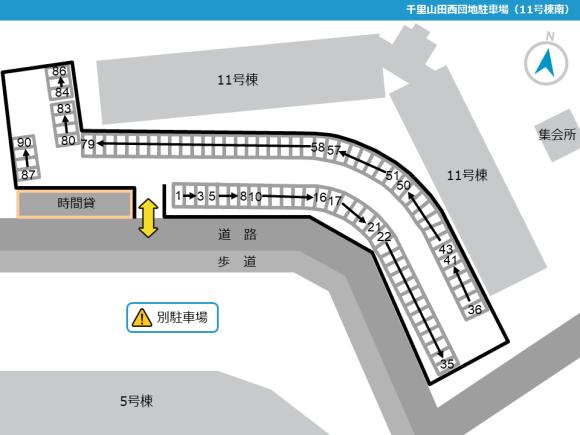 ※1ナンバー、8ナンバーのすべての車両は予約利用できません※ 【駐車場へのご案内】 ※大阪府住宅供給公社 山田西住宅の駐車場です。 ※団地駐車場が非常い広いため、事前に駐車位置(指定区画番号)を確認の上でお越しください。 【駐車の際にはご注意ください】 ※現地の車室番号とレイアウト図をご確認の上でお停めください。 ※団地内駐車場となりますので、アイドリング・喫煙・ポイ捨てはご遠慮ください。 ※両隣の月極契約車両の兼ね合いがあり、車幅180cmまでの車両での予約をお願い致します。 <ご予約した区画に不正車両が止まっていた場合>下記をご参照の上、空き車室の照会・振替および不正駐車情報のご入力をお願いいたします。https://btimes.jp/guide/rent_illegalpark.html |