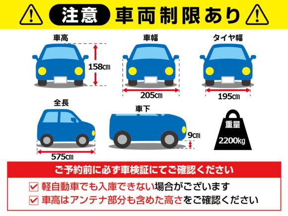 ※改造車、ルーフキャリア装着車(搭載物の有無問わず)は入庫不可