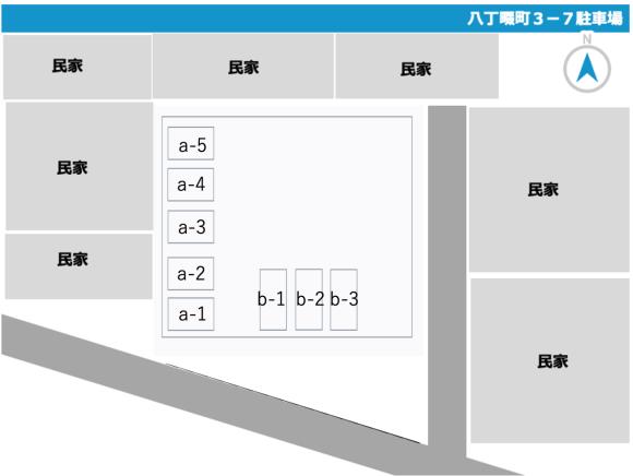 駐車場内にはトラロープを張っておりますが、 番号の記載はないため、事前に配置図をよく確認の上駐車いただきますようお願い致します。 場所についてわかりづらければ、 奥から駐車スペースを数えていただくようお願いします。 |