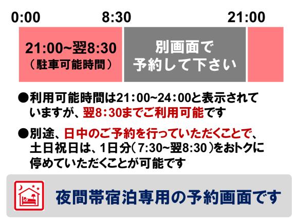 以下いずれかの場合に、24時を跨いでクルマを駐車することができます。