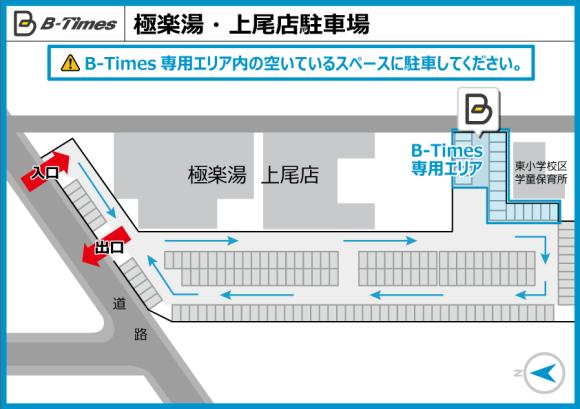 【駐車場へのご案内】 ●本駐車場は「極楽湯 上尾店」の店舗駐車場内です。 ●本ページ記載の住所で検索しても、カーナビ等で正しく表示されない場合があります。「GoogleMapsで見る」のボタンから、正しい位置をご確認下さい。 【駐車の際にはご注意ください】 ●予約専用エリアには、タイムズのBの看板が設置されています。掲載の配置図を参考に、お間違いのないように駐車して下さい。 ●予約完了メールに記載の内容に従い、お間違いのないように駐車して下さい。 ●巡回職員からお声掛けさせていただく場合があります。その際には、予約完了メールのご提示等、ご協力をお願い致します。 |