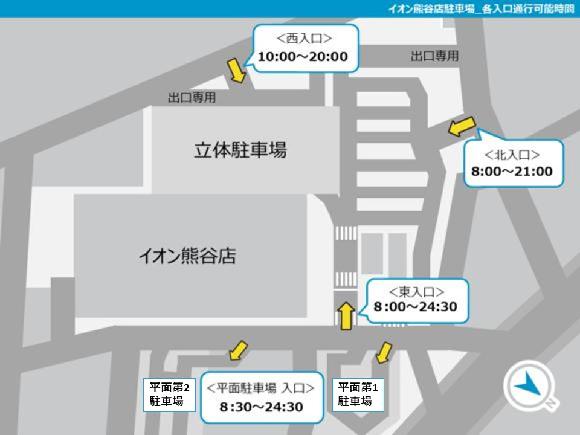 ※イオンご利用者は6時間以内のご利用であれば精算の必要はありません。 (6時間以内のご利用でも、精算完了後は返金できかねますのでご了承ください) ※駐車場内を定期巡回しています。お申込み時は、お車のナンバーは必ずお間違えのないよう入力をお願い致します。 ※出入口により入出庫可能時間が異なるためご注意ください。 <西入口> 10:00~20:00 <北入口> 8:00~21:00 <東入口> 8:00~24:30 <平面駐車場入口> 8:30~24:30 ※宿泊利用可能ですが、入出庫可能時間は上記の通りとなります。 ※平面駐車場は高さ250cmまで入庫可能です。 |