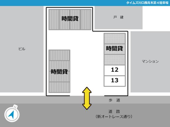 ※現地に記載の番号と写真のレイアウトをお確かめの上、お間違いのないように駐車してください。 ※タイムズ(時間貸し駐車場)と同一敷地内です。 時間貸しの駐車スペースをご利用された場合、ご返金はできかねますのでご注意ください。 |