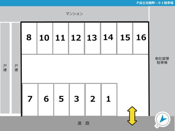 ※現地に到着した際は、必ずタイムズのBの写真や配置図をご確認の上、駐車してください。 間違って他の利用者の場所に駐車しないよう、お気を付けください。 (現地には番号が振られていないケースもございます。) 当駐車場はB利用と月極契約とを並行して募集しているため、万が一双方のお申し込みがバッティングしてしまった際にはご利用いただけない可能性がございます。恐れ入りますが予めご了承のうえご予約をお願いいたします。 |