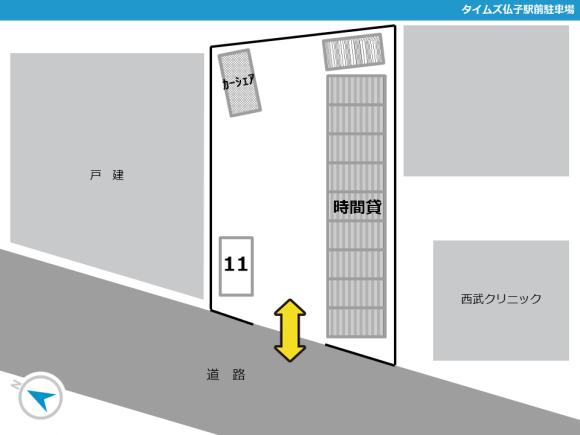 ※タイムズ(時間貸し駐車場)と同一敷地内です。 ※時間貸しの駐車スペースをご利用された場合、ご返金はできかねますのでご注意ください。 ※現地に記載の番号をお確かめの上、指定された番号に駐車してください。 |