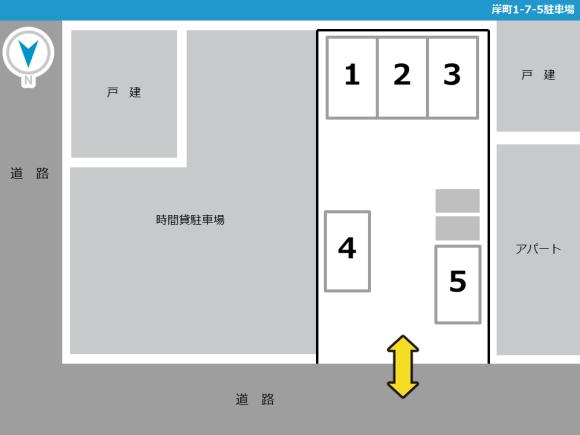 | 注意事項 | ※定期契約者専用区画がございます。写真のレイアウトをご確認頂き、お間違いのないように指定された番号に駐車してください。 |