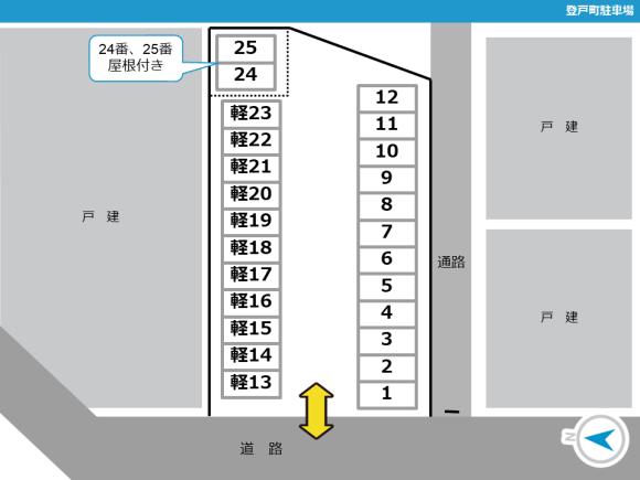 ※定期契約者専用区画がございます。現地に記載の番号と掲載されているレイアウトをお確かめの上、お間違いのないように駐車してください。 ※軽自動車専用の屋根付きの駐車スペースとなります。ご予約の際はご注意ください。 |