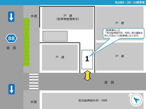 駐車区画1: 「和光脳神経外科・内科」前の道路を挟んだ向かいの駐車場になります。(掲載されているレイアウトをご確認ください)