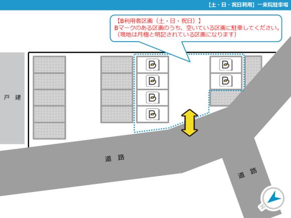 ※土・日・祝日のみ利用可能な駐車区画となります。 掲載されているレイアウトをご確認頂き、お間違いのないように駐車してください。 |