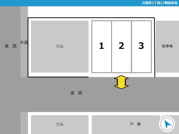 ※現地に到着した際は、必ずタイムズのBの写真や配置図をご確認の上、駐車してください。 間違って他の利用者の場所に駐車しないよう、お気を付けください。 (現地には番号が振られていないケースもございます。) |