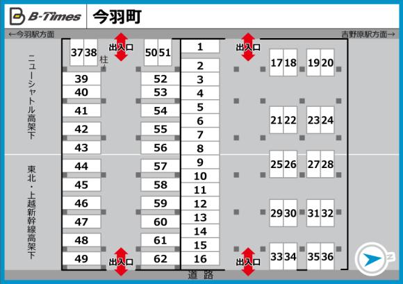 ※本駐車場は、以下の車両の駐車は禁止とさせて頂いております。ご了承くださいませ。 <駐車禁止車両>大型車及び8ナンバーの車両、バイク 【駐車場へのご案内】 ※月極駐車場内に駐車区画があります。 ※カーナビ等でピンポイントに指定されない場合は、「GoogleMapsで見る」のボタンから正しい位置をご確認ください。 【駐車の際にはご注意ください】 ※他の月極契約者様の駐車スペースに誤って駐車しないよう十分お気を付けください。 ※現地に記載の番号が見えづらい場合があります。駐車場情報のレイアウト写真を確認の上で指定の区画にお停めください。 ※アイドリング禁止、夜間のドア開閉などに配慮をお願いします。 当駐車場はB利用と月極契約とを並行して募集しているため、万が一双方のお申し込みがバッティングしてしまった際にはご利用いただけない可能性がございます。恐れ入りますが予めご了承のうえご予約をお願いいたします。 |