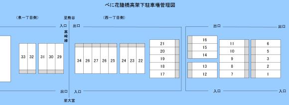 桶川市役所訪問から、南西に向かってべに花陸橋側道に入りお越しください。 車室番号によって入口が異なりますので、ご注意ください。 ※カーナビの住所検索では正確に表示されない場合があります。 表示されない場合は、マップコード【14 322 043*26】をご利用ください。 「マップコード」および「MAPCODE」は(株)デンソーの登録商標です。 |