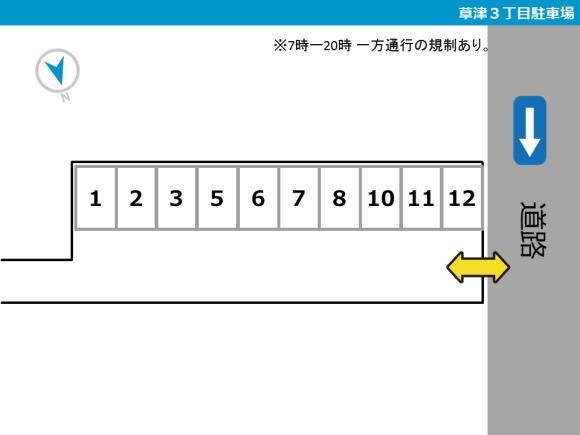 ※4/27は草津宿場まつり開催のため、通行規制がございます。ご注意ください。 ※7時から20時の間、一方通行の規制がございます。ご注意下さい。 ※駐車場の背後に、住宅がございます。アイドリングストップにご協力下さい。 |